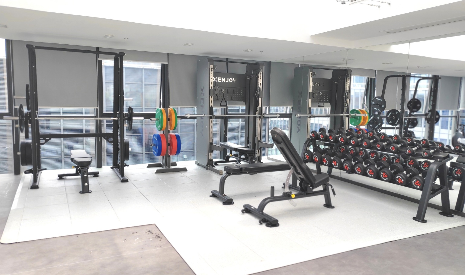 该项目在60㎡的有限尺度内,通过精心组合的产品形态,构建出功能完备、动线流畅的企业健身舱。通过立体化布局与镜面延展手法,有效消解空间的逼仄感;精选多功能集成设备,以极简器械实现全身肌群覆盖,让每一寸空间承载实用价值。以最小投入,激活团队活力,提升员工满意度与归属感,满足企业员工的多元运动需求碎片时间亦能高效健身。